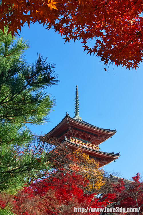 清水寺宛如古都的风物诗般,完完全全的将京都的风采表露无疑,无论是春天的樱花,夏天的瀑布,秋天的红叶,冬天的细雪,清水寺都彷佛是为了证明京都的美而存在的。
